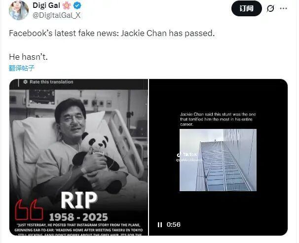 成龙又“死”了,这次是AI。 11月10日,一则新闻在网络疯传:71岁的成龙因旧伤复发去世。照片中,他躺在医院病床上,脸色苍白,连日期都标注着“2025年11月9日”。许多人信以为真,纷纷转达哀悼,一些媒体甚至纷纷效仿。结果第二天,成龙本人就在微博晒出了自己的新电影海报,并笑着宣布:“明年春节《熊猫计划2》见!”谣言很快就被辟谣了。这已经不是第一次了。从2015年开始,成龙每隔一两年就得“死”一次。有时是“突发心肌梗塞”,有时是“晚期癌症”。这次又升级了。人工智能被用来生成一张看起来像真实的医院病床的图片。就连皱纹也模仿得非常完美。技术越先进,性能越好谣言蔓延;它越是渴望流量,它就越安静地吃人。最讽刺的是,这种谣言之所以能够传播,正是因为它被伪装成“合理”。成龙冒着生命危险,摔断了肺,动了脊椎骨。网友心想:“他真的受伤了,总有一天。”的八卦被驳回,总有人说:“哎呀,小心就会惹上麻烦。”关心?如果你真的在乎,就先证明一下,而不是急着发“RIP”来获得情感流量。这种“善意的伤害”比恶意谣言更难以避免,因为它是用同情糖衣包裹的,实际上却是在吃一个活生生的人。 AI的加入让这场闹剧失控。过去,假新闻依靠文字和模糊的截图,但现在一张高清的“关键图像”可以欺骗数以百万计的眼睛。科技本质上是无辜的,但当它被用来假死、收割流量、制造恐慌时,就成了一种新型的数字暴力阿尔年龄。我是Jackie Chansmo,还是蛮宽容的。他说“病态的样子”其实是为新电影留下的白发造型,“大家不用担心。”但我们应该担心的从来不是他是否老了或生病了,而是一个功绩卓著的艺术家为什么要在活着的时候一次又一次地证明自己呢? 61年的电影生涯,200多部作品,全世界无数观众的童年回忆,也是第一个获得奥斯卡终身成就奖的华人。这样的人应该受到尊重和保护,而不是成为流量猎手的提款机。每一次“死亡”都是对人类尊严的侵犯。试想,如果你的父母或长辈突然“死”在网上,你的家人毁了,但出了问题,心理影响谁来负责?平台怎么样??如果任由人工智能生成的内容传播,审核机制就失去了作用;造谣者在哪里?躲在国外IP背后,远离它;哪里e 是观众吗?点赞就走,不验证。在整个链条中,只有受害者必须保持站立并证明:“我还活着。”这是正常的吗?我们生活在一个信息爆炸的时代,但主流媒体素养却日益消失。看到令人震惊的标题就相信,看到“高清图”就转发,宁愿发一千条错误信息也不愿再检查一秒。正是这种集体的懒惰滋生了谣言。成龙我们不需要为他哭泣,但他值得一个更加理性的舆论环境。下次当你看到某个名人去世的消息时,请记住三件事:第一,查看公众号;第二,查看强势媒体;第三,不要急于通过。只要将手指停下来一秒钟,就能避免无辜者受到伤害。技术可以伪造图像,但它无法伪造一个人数十年的奉献和忠诚。杰基陈陈还在拍戏,还在笑,还在为中国电影努力——请不要让他在活着的时候一次又一次“死去”。毕竟,真正的荣誉不是在他“死”后充斥荧幕,而是在他活着的时候向他展示最基本的尊重和信任。